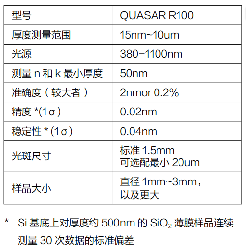 b.測(cè)量精度和穩(wěn)定性高:可測(cè)量材料厚度、折射率、吸收系數(shù)和反射率等;d.操作簡(jiǎn)單且功能豐富:產(chǎn)品規(guī)格: